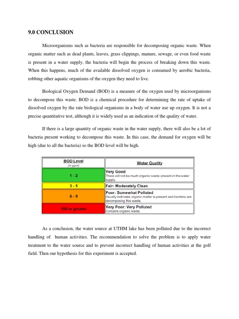 Bod Conclusion Pdf Water Environmental Science